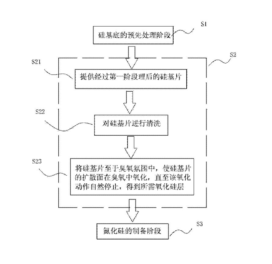 所述臭氧氧化工藝之后,還包括步驟4):在氧化硅層表面沉積氮化硅層。所述氮化硅層的厚度在80?90nm之間。