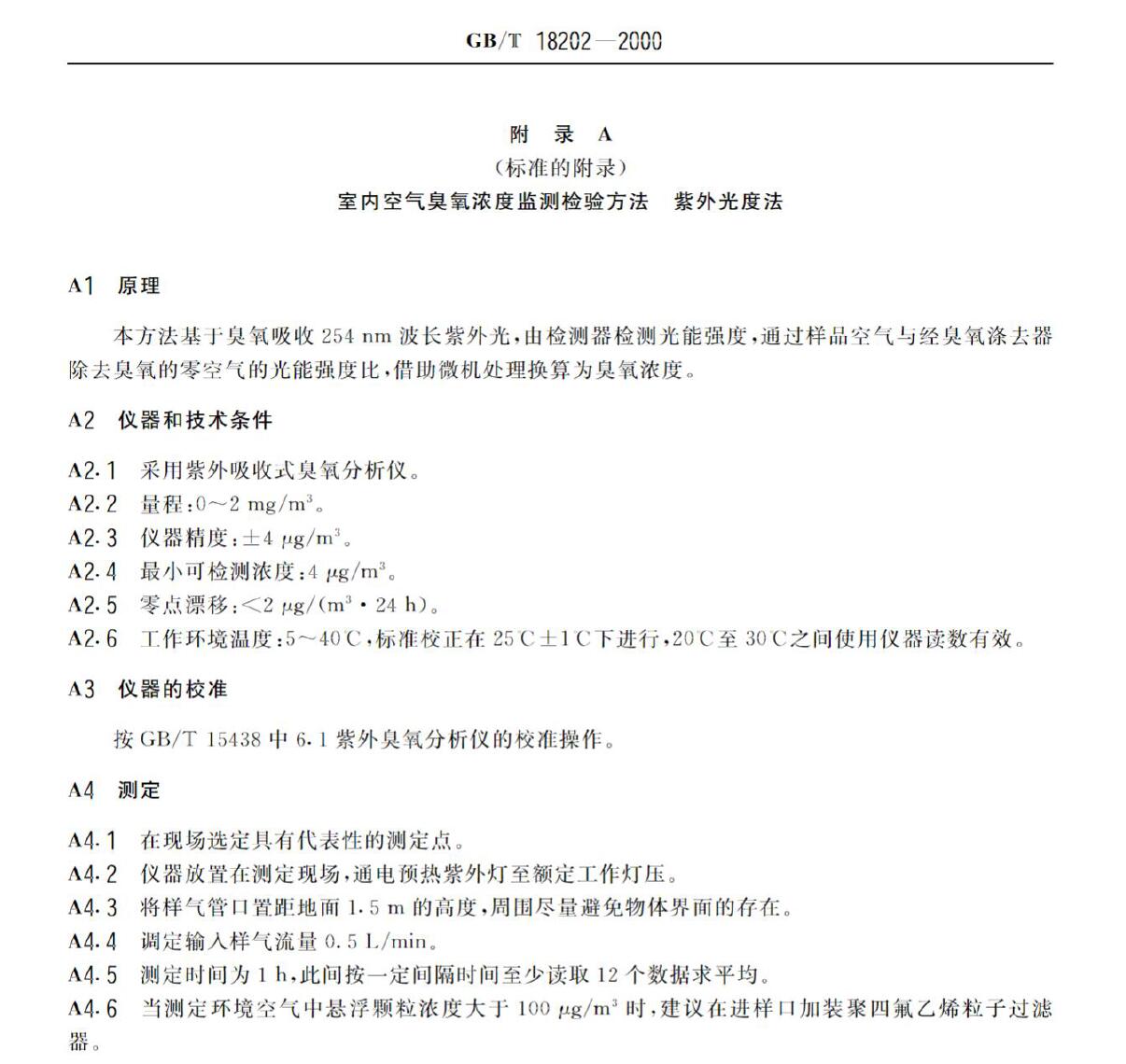 A2.1采用紫外吸收式臭氧分析儀。