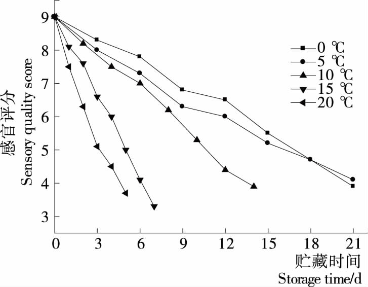 圖2 貯藏溫度對鮮切杭白菜感官品質的影響