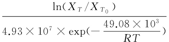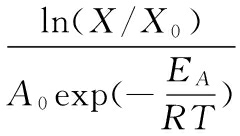 結合式(1)、(2)即可得到以貨架期tsl,指標數值X和溫度T為變量的預測模型方程: