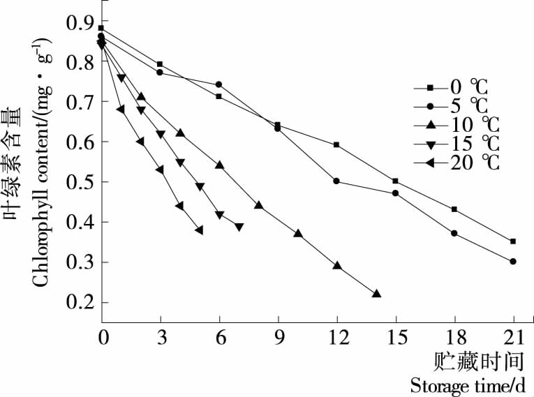 2.4 貯藏溫度對鮮切杭白菜葉綠素含量的影響