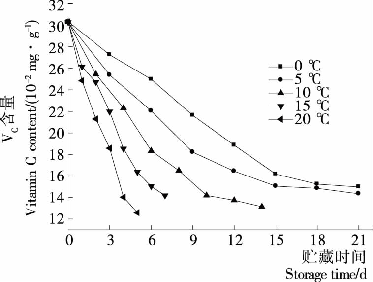 圖3 貯藏溫度對鮮切杭白菜VC含量的影響