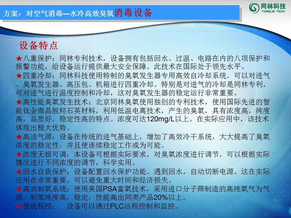 同林科技牌臭氧消毒設備,產生的高濃度消毒水幾乎對所有病菌、病毒、霉菌、真菌及原蟲、卵囊都具有明顯的滅活效果。